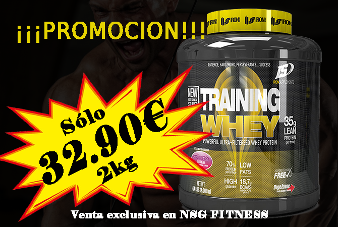 Training Whey de Iron Supplements es una proteína que nos ayudará a mejorar nuestros entrenamientos, favorecer el desarrollo muscular, retrasar la aparición de la fatiga y acelerar la recuperación. Training Whey contiene un 71% de proteínas y un 18,7% de aminoácidos ramificados además de una alta cantidad de glutamina.