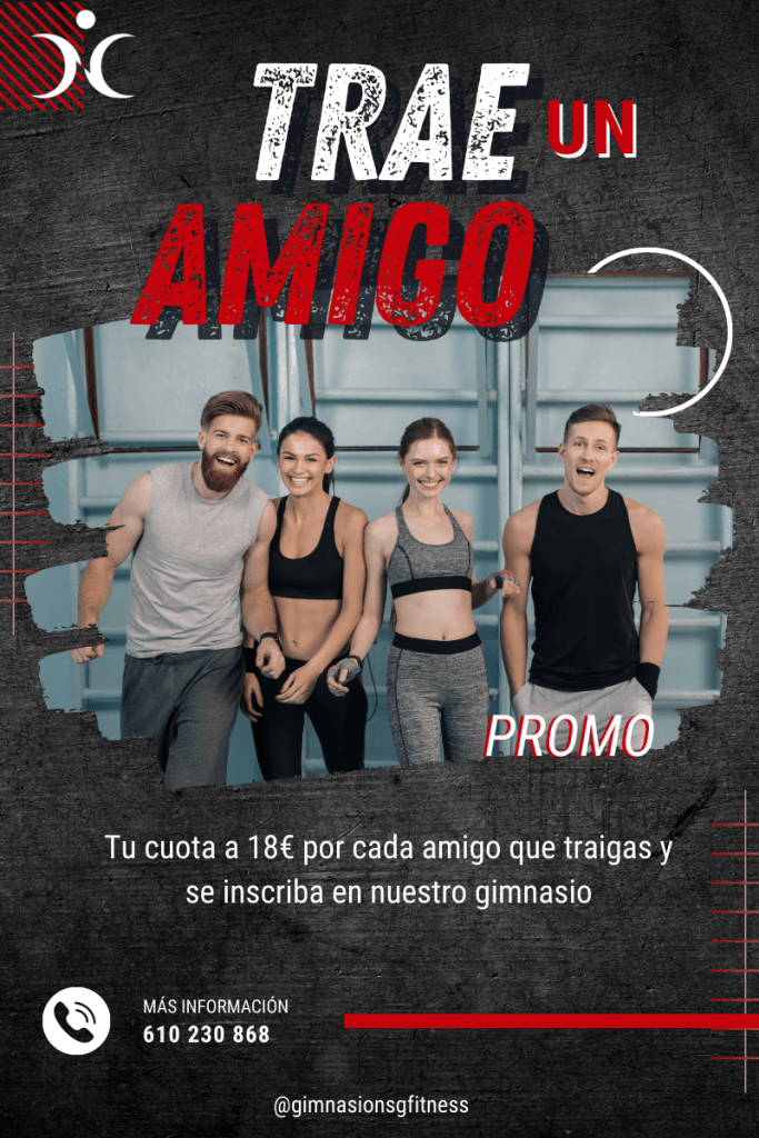 Disfruta de más del 40% de descuento en tu cuota mensual por cada amigo que traigas y que se inscriba en nuestro gimnasio.
