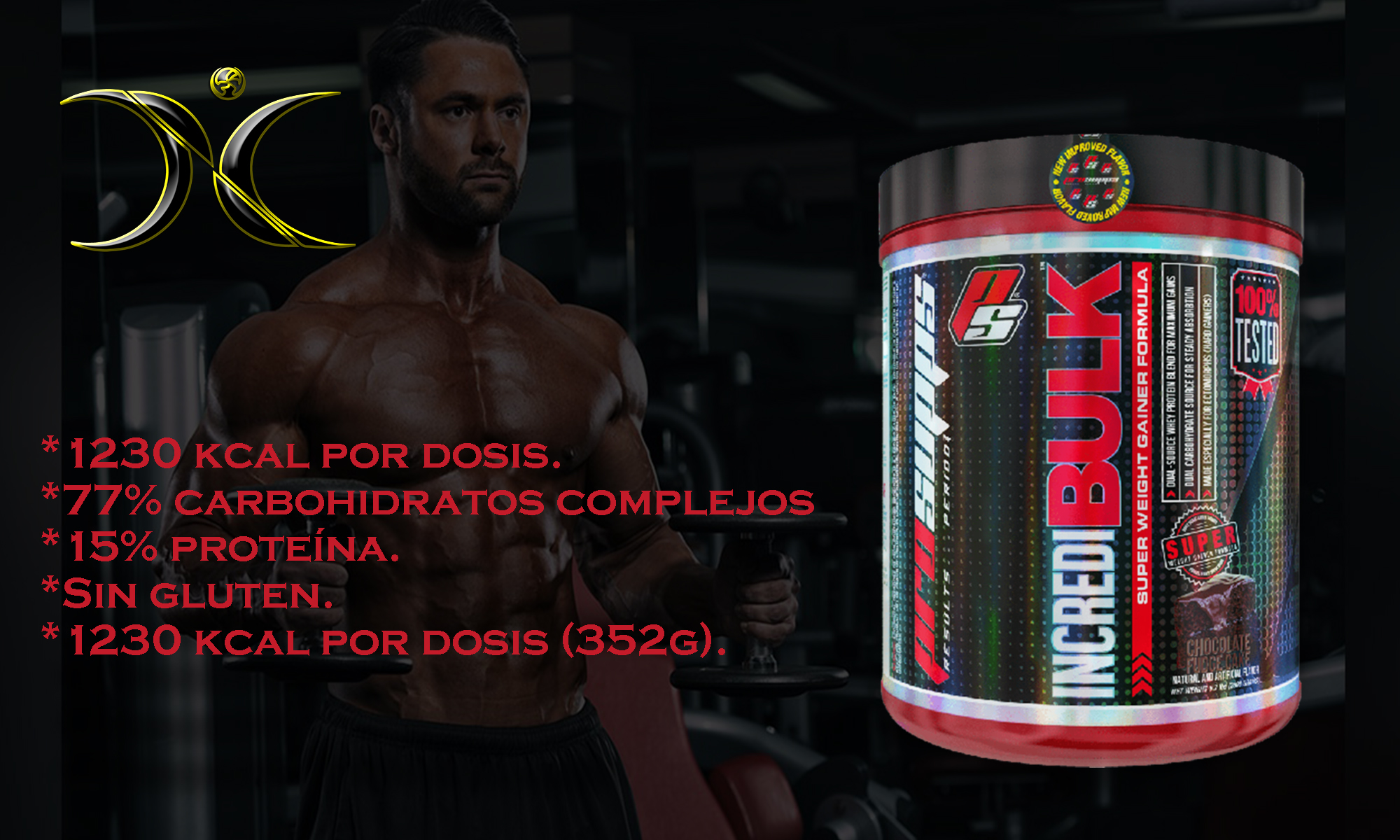 IncrediBulk de ProSupps ha sido formulado específicamente para que puedas subir fácilmente de peso, aportándote hasta 1230 kcal, ¡que tus esfuerzos en el gimnasio sirvan de algo!